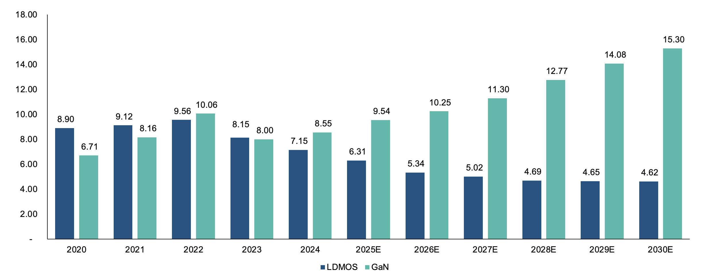 Figure 14 Global LDMOS and GaN Market Size (USD 100 Million)