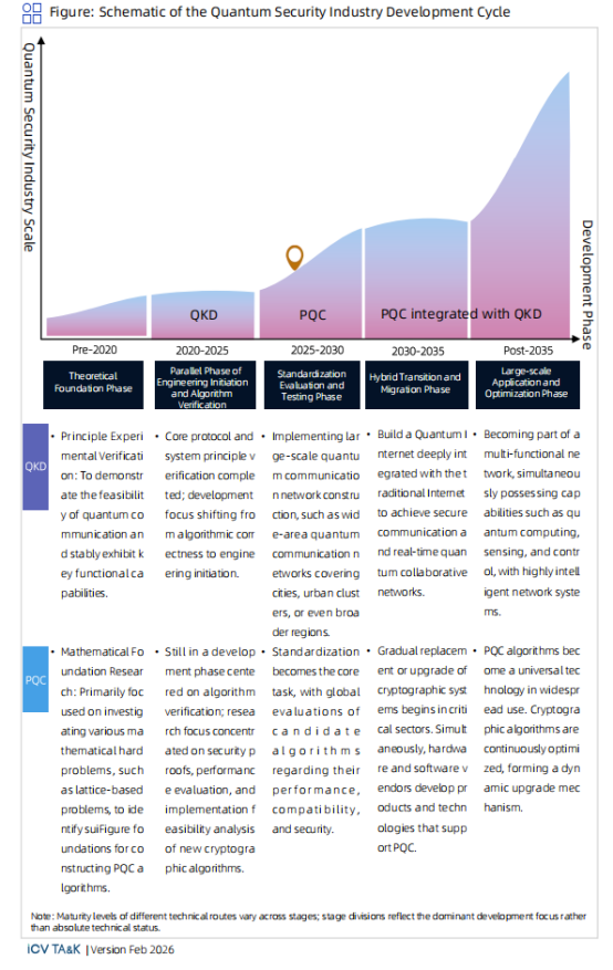 Looking ahead, as quantum computing capabilities continue to advance and risks to traditional public-key cryptosystems are incorporated into long-term assessment frameworks, quantum security will evolve from phased deployment toward large-scale systematic implementation. The migration pace of PQC and the networking capacity building of QKD will form a layered and coordinated architecture, with hybrid security frameworks emerging as a pragmatic pathway.