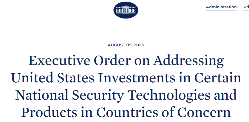 https://www.whitehouse.gov/briefing-room/presidential-actions/2023/08/09/executive-order-on-addressing-united-states-investments- in-certain-national-security-technologies-and-products-in-countries-of-concern/